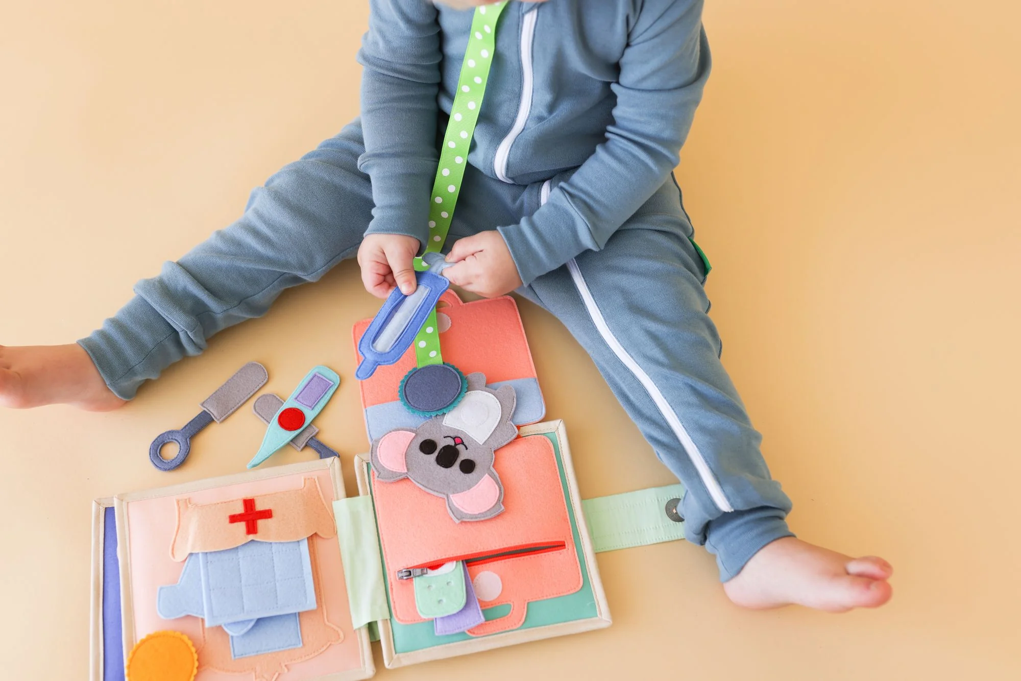 Unleash endless imaginative play with our comprehensive medic book, featuring a complete doctor’s kit and a ward to care for patients. This set includes a bed and an X-ray station with buttoned, interchangeable X-rays to help little ones develop their fine motor skills.